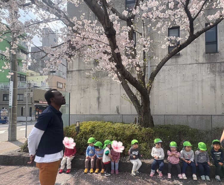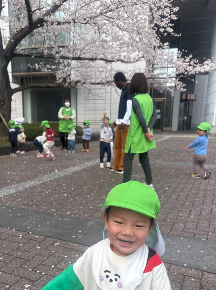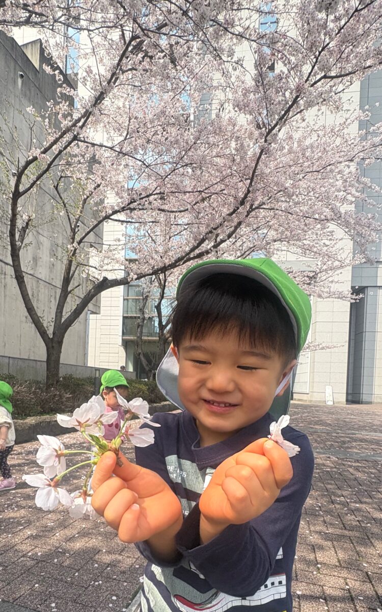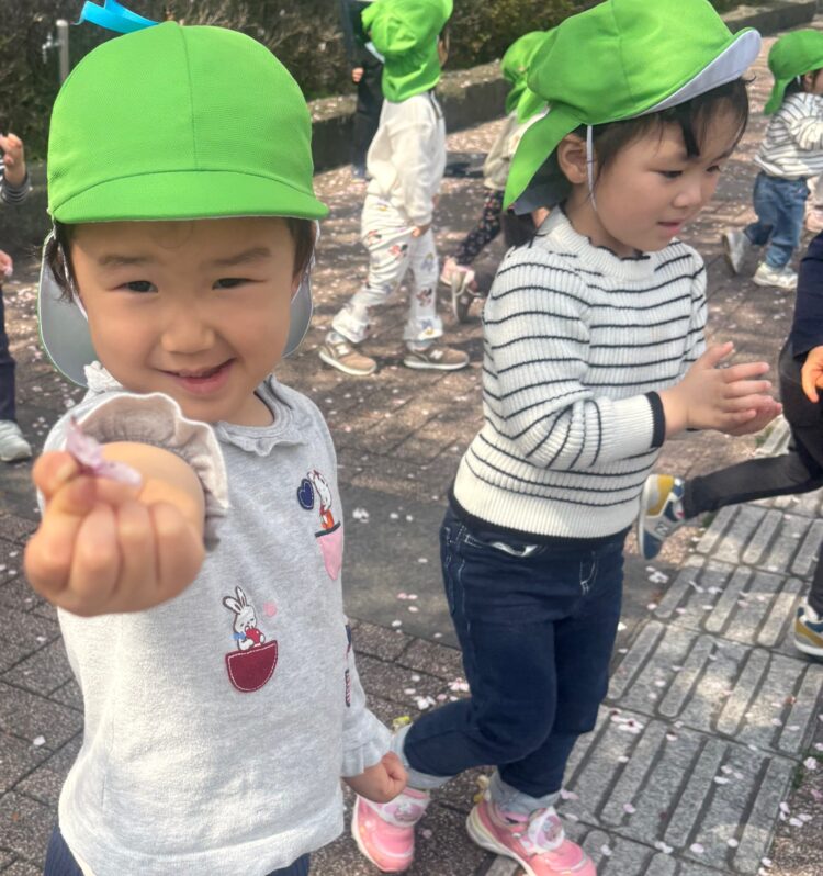 ひらひらと舞い落ちる花びらを追いかけたり、じっと見上げてみたりと、それぞれが春の景色を楽しんでいる様子が見られました![]()