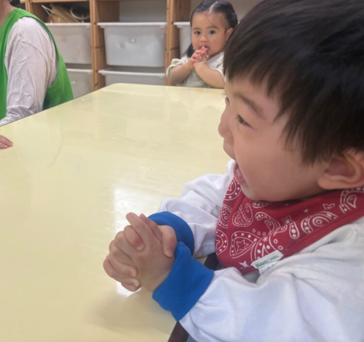 初めての環境にドキドキして、ママと離れると涙が出てしまう姿も見られますが、一人ひとりの気持ちに寄り添いながら、少しずつ園での生活に慣れていけるよう、ゆったりと関わっていきたいと思います![]()