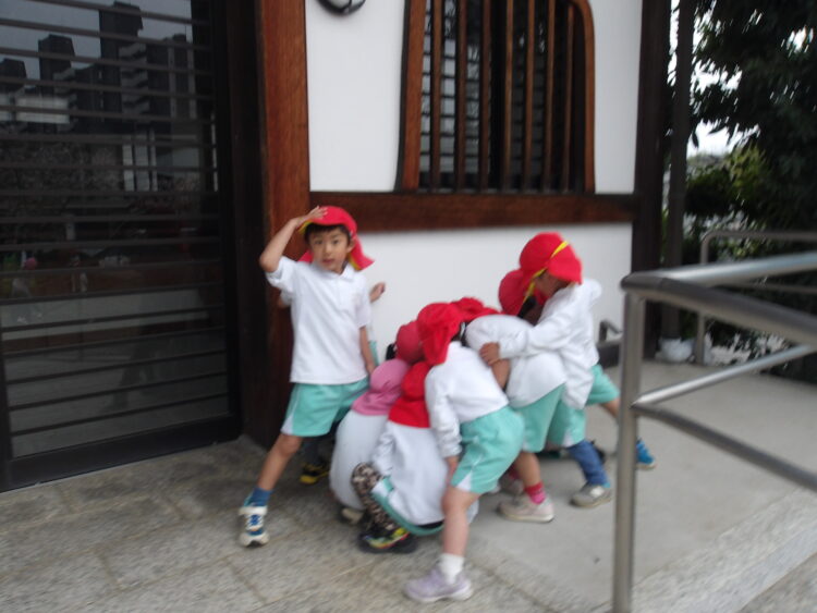 舎利殿に着くなり、皆で集まって鬼決めをして、鬼ごっこが始まったり、