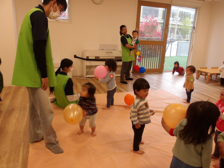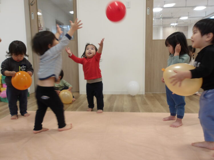 雨が降ってきたのでお部屋に戻って風船遊びもしましたよ🎈
