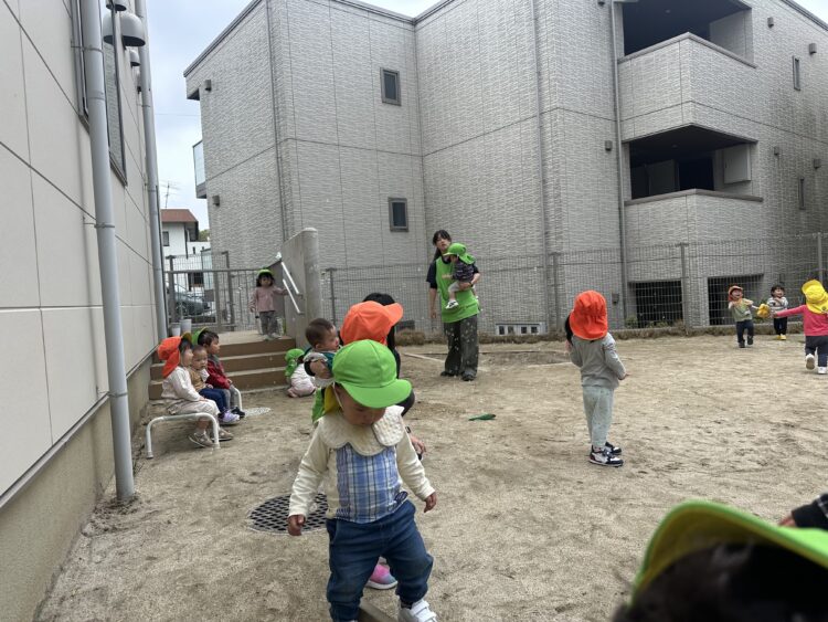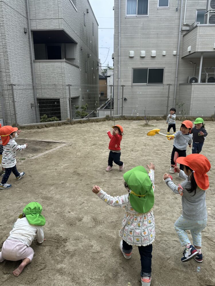 あひる組、うさぎ組は朝は園庭で遊びました。シャボン玉をすると大喜び!みんなで追っかけていました😊