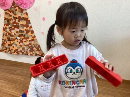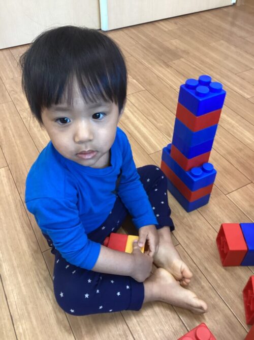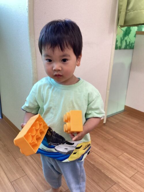 ブロックを積み上げたり、パンに見立ててパン屋さんごっこをしたりと、思い思いに遊ぶ姿が見られました😊
