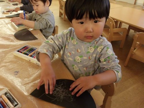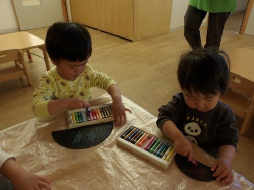あひる組さんは自分のクレヨンを使ってお絵描きが出来て満足そうにしています😆💗