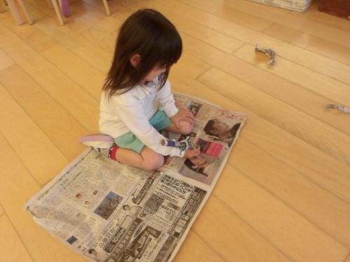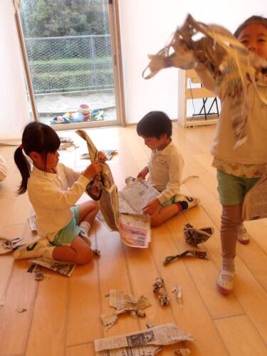 新聞紙遊びのお友だちも自分で何を作ろうかいろいろ想像して素敵なものをつくりあげていました👏