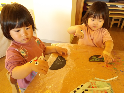 手に目が! なんの製作かな~ なにができあがるのかな~