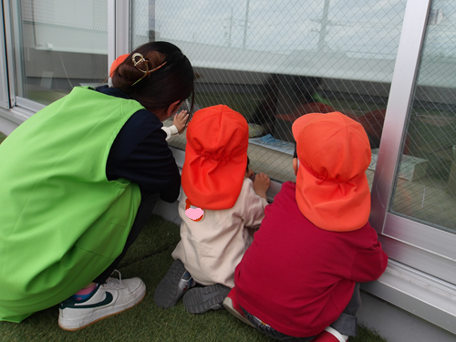 屋上園庭では、先生と一緒に職員室を覗いていました😀✨