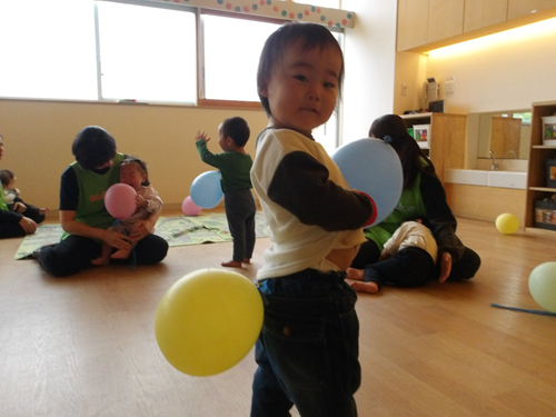 「せんせえ、みてえ~?」と風船のしっぽを見せてくれました😆💖