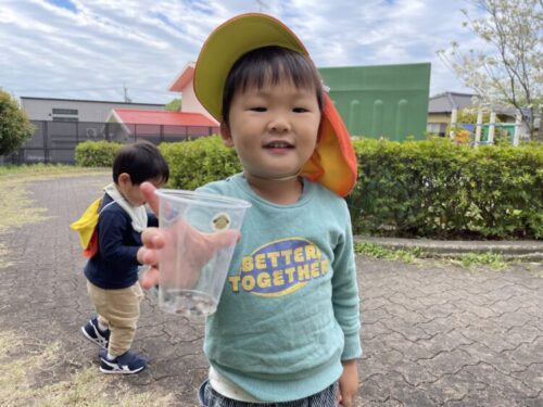 みんなマイカップを持って虫さんや葉っぱ、豆を探していました👀
