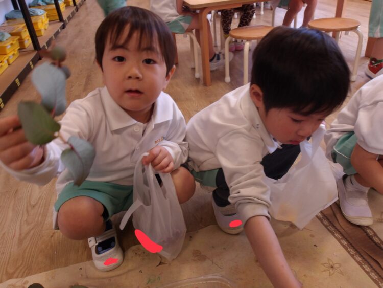 葉っぱをガサゴソ、、、と触ったり千切ったり、、