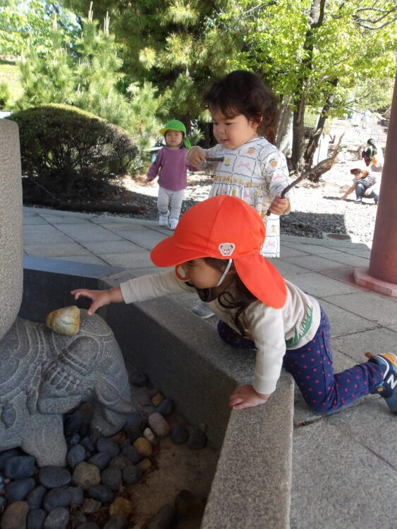 ぞうさんみっけ!石が置いてあるの届くかな?