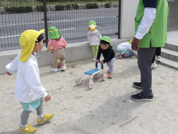 お兄さん、お姉さんと遊んでもらえてとても楽しそう🤭