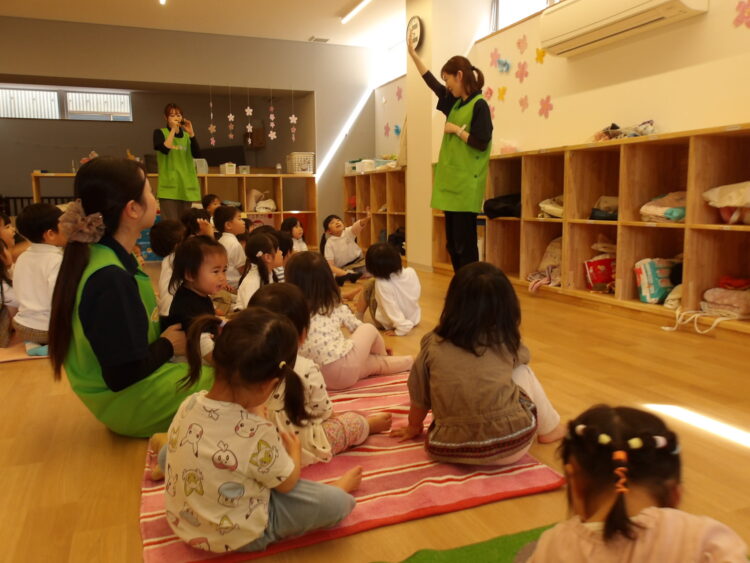 マットに座ってお話を聞くことができましたよ![]()