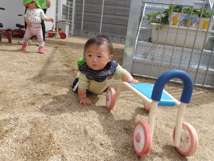 ひよこ組さんも起きているお友だちは園庭をベビーカーでお散歩しました♪