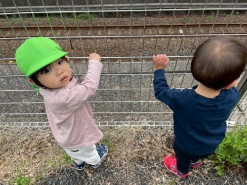 電車が通る度に笑顔で手を降り見送る子ども達。
