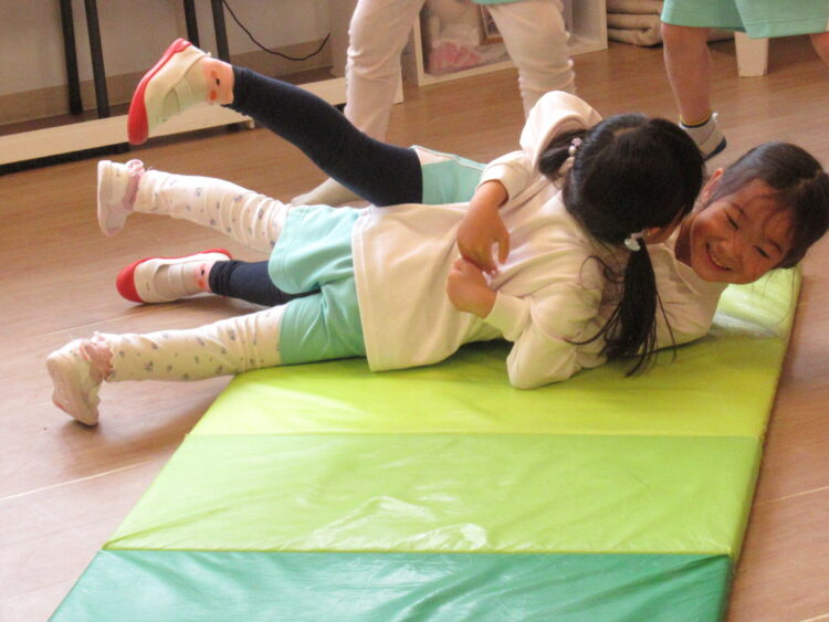 他にもお友達と手を繋いでゴロゴロしたり、お友達と一緒に寝転んで進んだりとお友達と息を合わせて頑張りました🏆