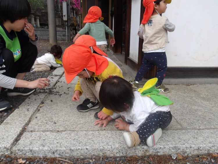 舎利殿に着いた後は落ち葉やきのみを集めてみたり、虫を探してみたり、追いかけっこをしてみたり、それぞれ好きなことをして遊びました☺️