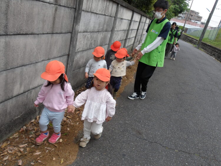 みんな上手に手を繋いで道路の端を歩くことができています👏