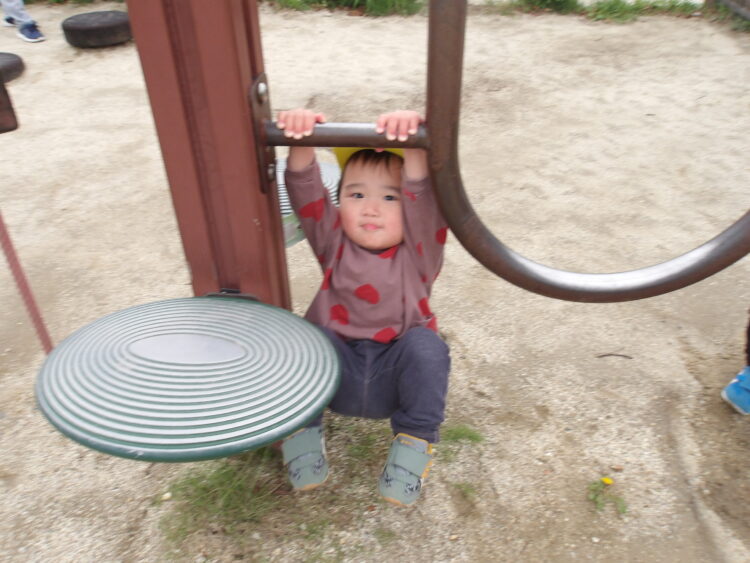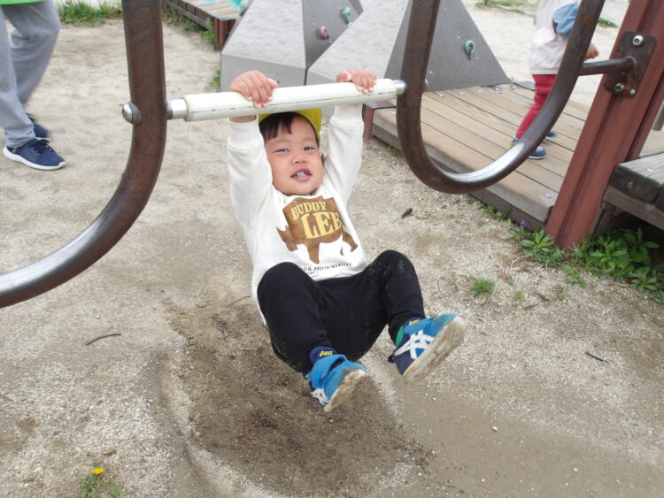 あひる組も体操教室の鉄棒のように遊具にぶら下がったり、