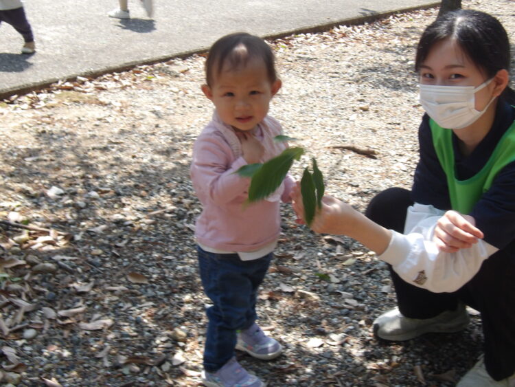 新緑が心地よく、落ちている葉っぱを見つけたり、、