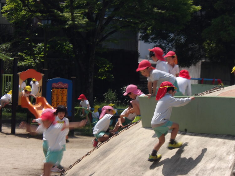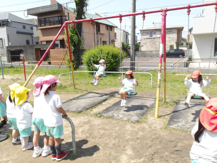 公園ではブランコや山の遊具などで遊ぶ姿が見られました!