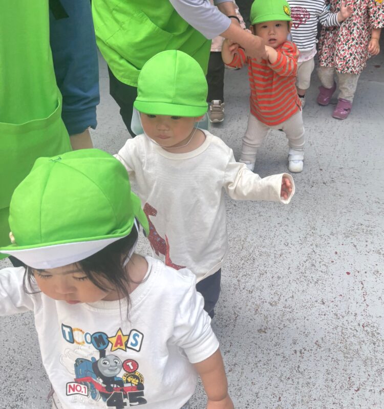 ぽかぽかとした陽気の中、シャボン玉あそびを楽しみましたよ。