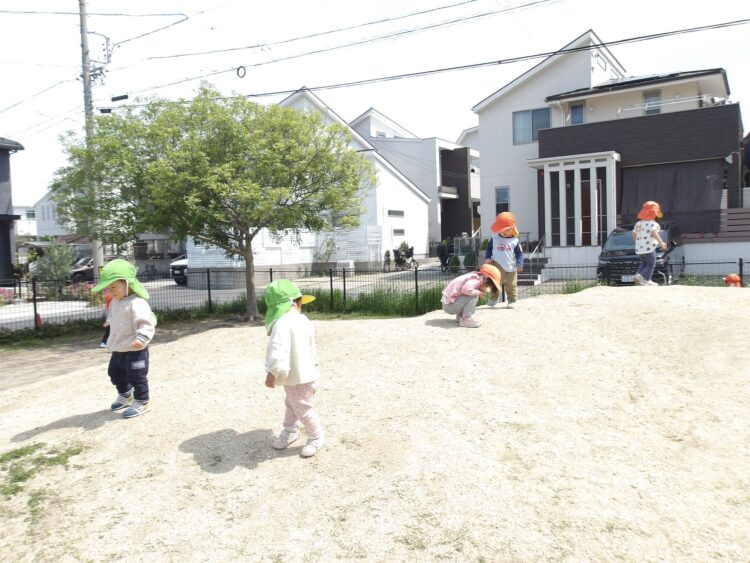 築山では走ることを楽しんだり、アリの観察をしたりと