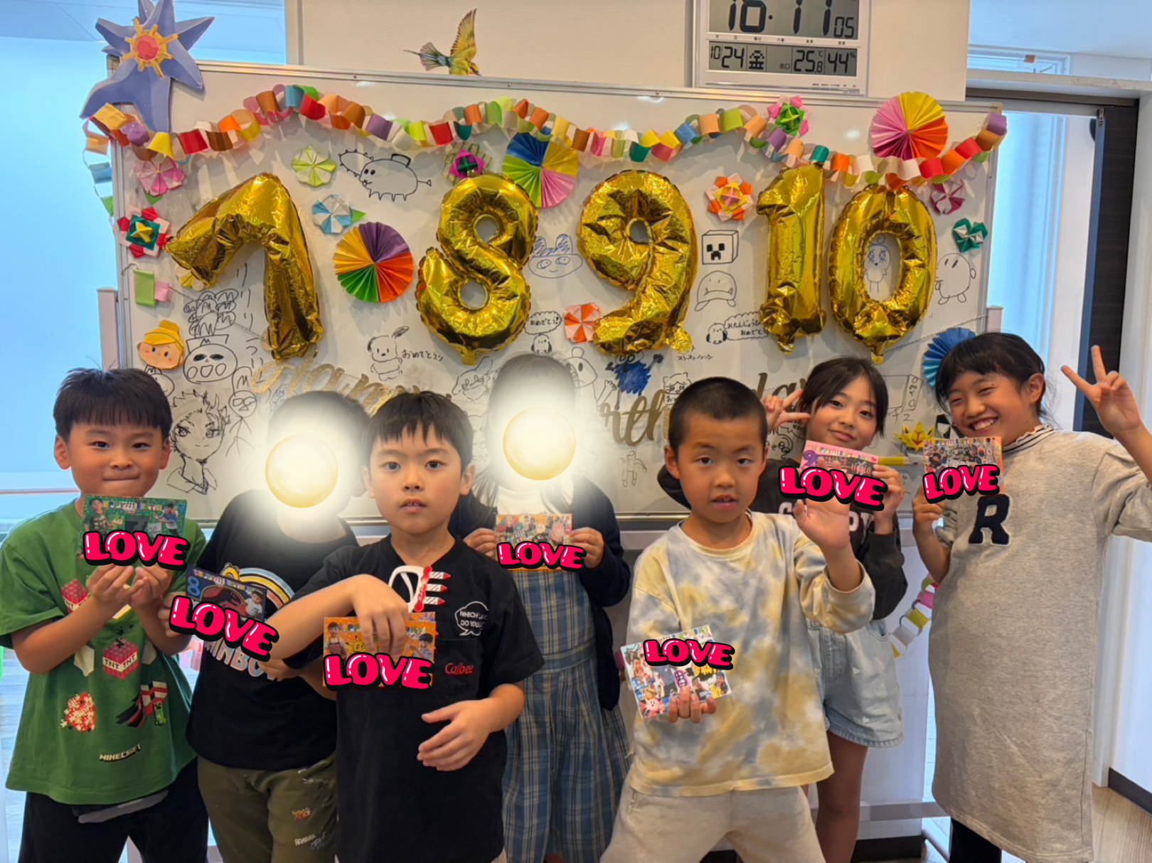 このところ、朝が冷え込んできて、 子供たちの服装も少し暖かそうな格好に変わってきていますよ😊 そして今日は10月のお誕生日会🎉 今月も仲良しのお友だちの為に みんなでホワイトボードを飾り付けてくれました😄 準備ができたらお誕生日会のスタートです。 「好きな食べ物は何ですか?」 「ポケモンの中で何が一番好きですか?」 「好きなキャラク……