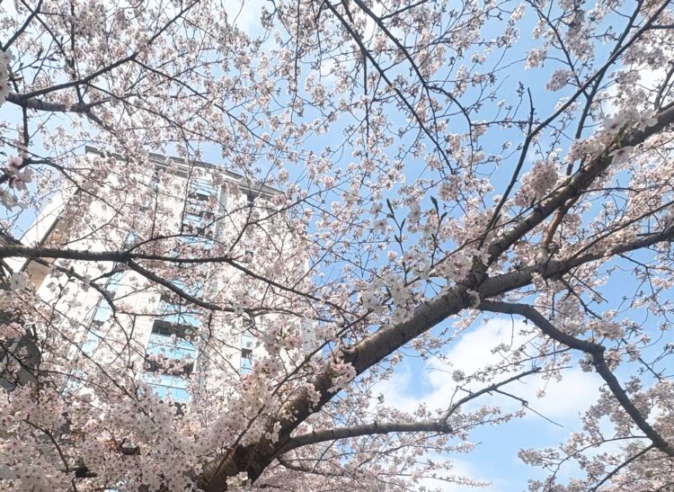 大学の周りでは、ちょうど桜が満開を迎えており、とてもきれいに咲いていました![]()