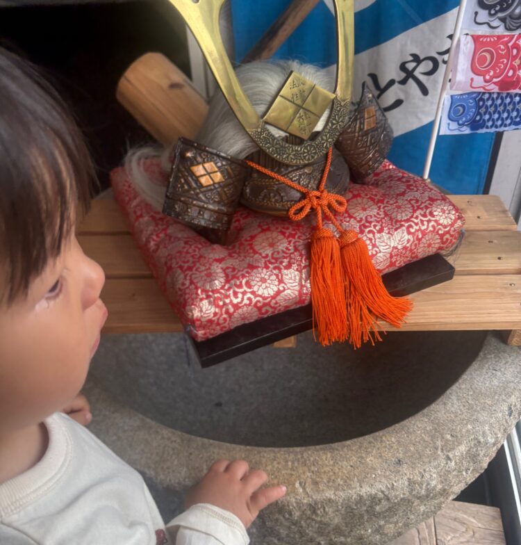 お米屋さんに飾られている兜を見たりしながら、元気に歩いていました🎏