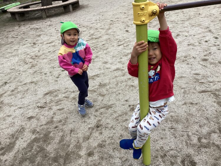 鉄棒ではいつも「みてみて、すごいでしょ~🎵」と得意げな表情がたくさん見られます🥰