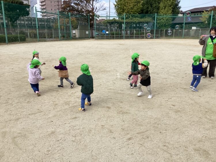 その後はグラウンド内でシャボン玉を追いかけて体を動かしました🏃♀️