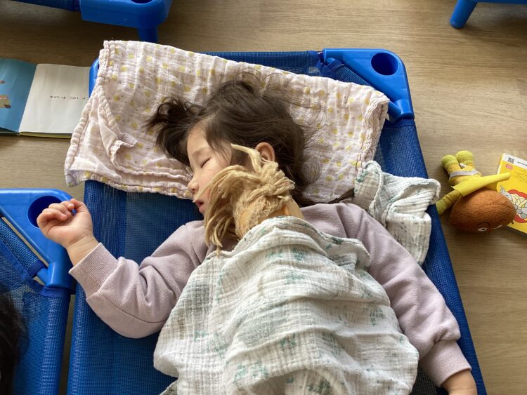人形のお母さんになりきって、一緒に寝る姿に、ほっこりします☺️
