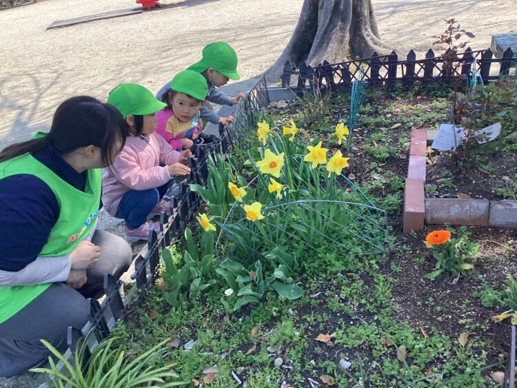 「黄色いお花咲いてるね」「STARみたいだよ」と、花の形にも注目してみてよーく見ていたみんなです👀✨