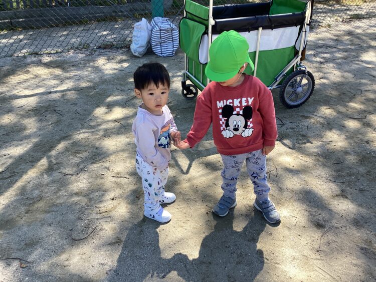 新しいお友だちに手を差し伸べて一緒に遊ぶひまわり組のおにいさん🤭✨