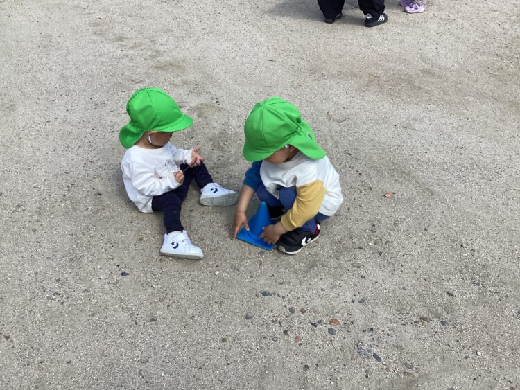 見つけたアリさんが動けなくなっているのを見て、心配そうに見つめている子や、助けたくて葉っぱで支えようとする子など様々な反応が見られました。みんなで応援することにし「アリさんがんばれー!!!」と大きい声でかけ合う子どもたち📣✨素敵な姿でほっこりしました😊💞