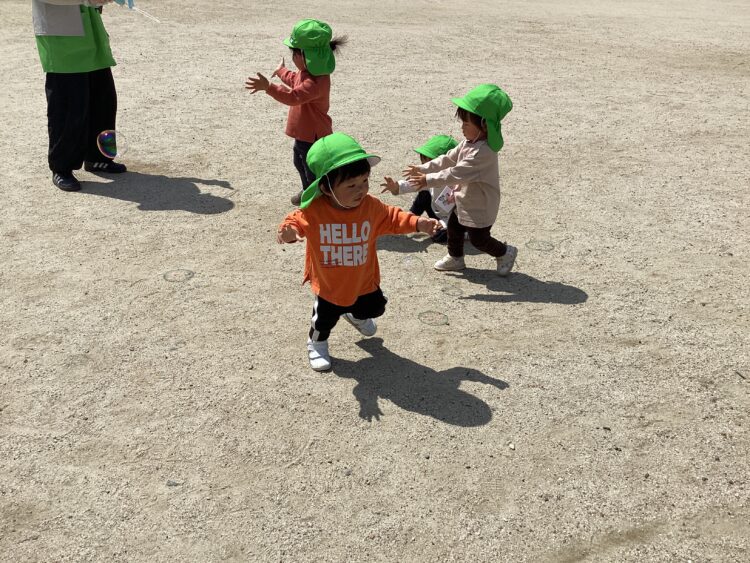 シャボン玉が大好きなお友だち🫧風がなかったので、割れやすい高さでふわふわ飛ぶシャボン玉を必死に両手で割ろうとする姿が可愛かったです🤭💞