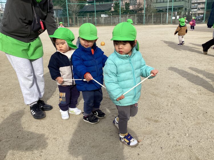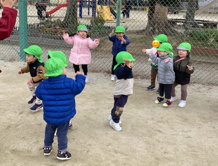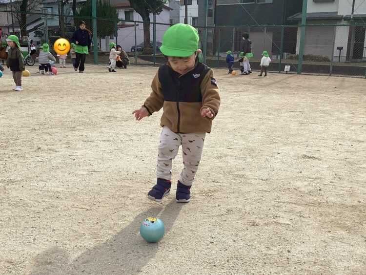 「ボールをえいっ!」とキックしたりして、寒い中でもたくさん体を動かしました🙌