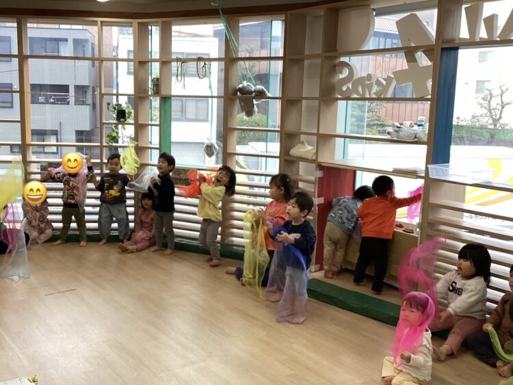 春が来た嬉しさを上に飛ばして表現したりして楽しむお友だち😊