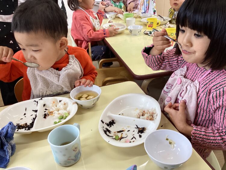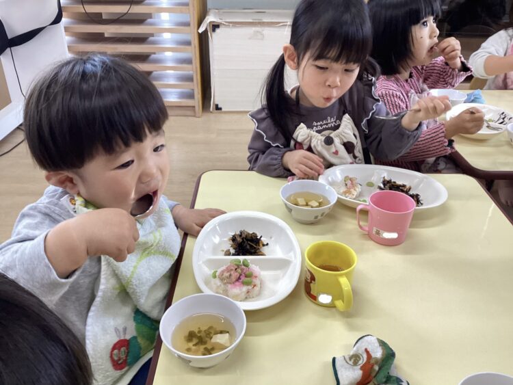 ひなまつりの由来を聞いたり、ちらし寿司が完成する様子を見たりして親しみました😊