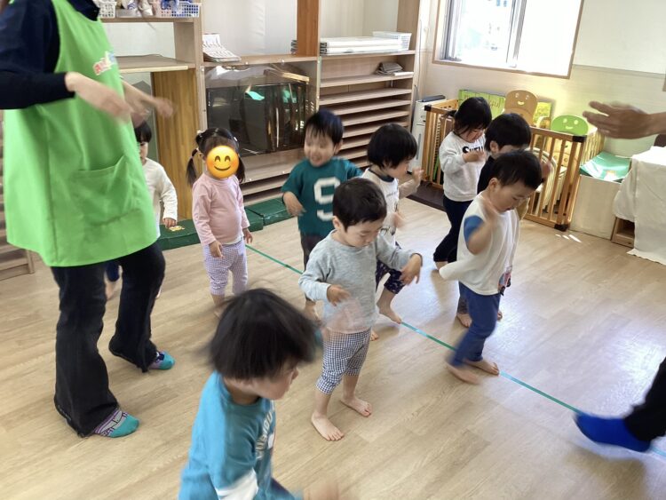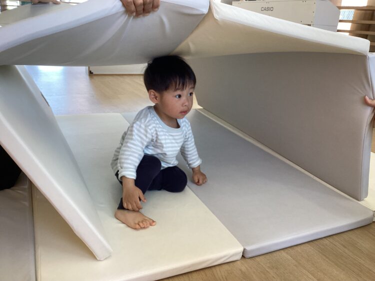 他にもマットでトンネル潜りをしたり先生の補助を受けながらジャンプを楽しみました🎶