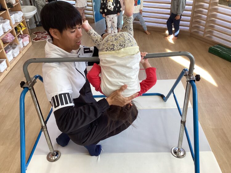 初めての挑戦に、ドキドキしている表情もしていましたが、保育者や先生に補助してもらい、できるとハイタッチして喜び合っていました✋