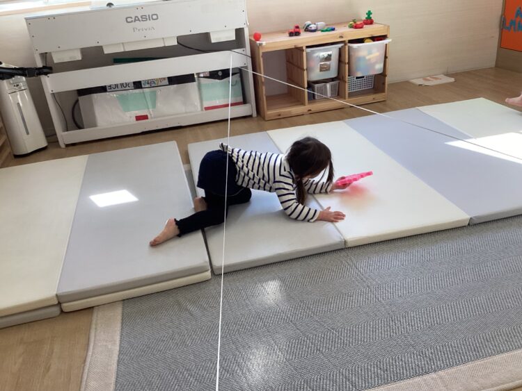 ゴムに当たらないように、バランスをとって越えられたときは「すごいでしょ✨」と得意げでした👏