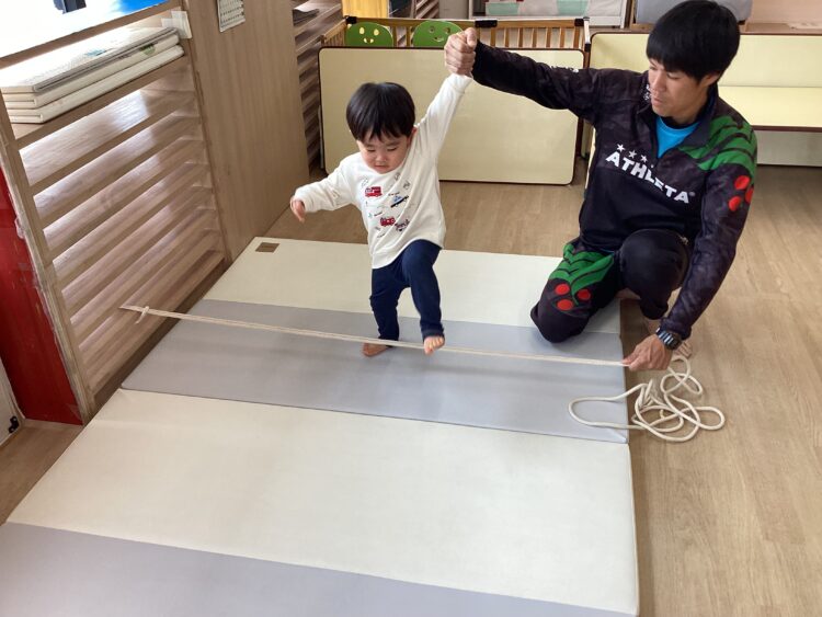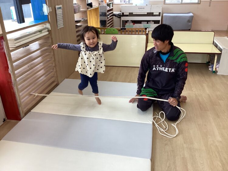 無事に跳べると、保育者とハイタッチして喜んでいました🙌