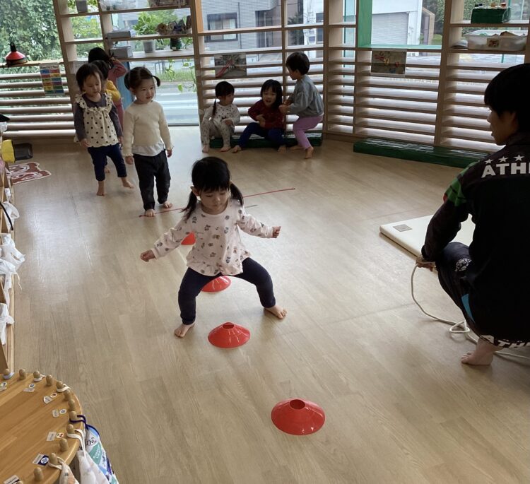 ぐーぐーぱーも織り交ぜながらコーンを踏まないようにジャンプしていましたよ😊