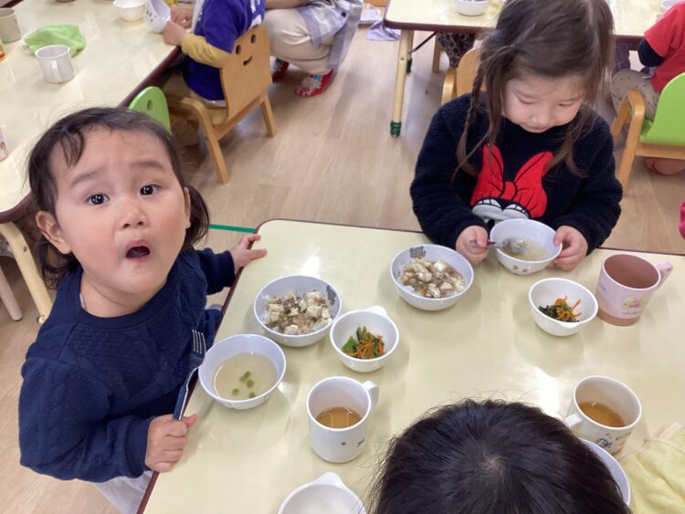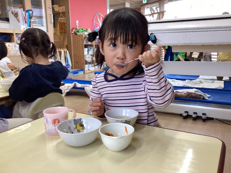 たくさん遊んだ後は大好きな給食です😋