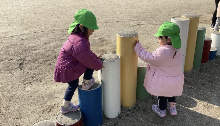 地面に大きな丸をいくつか描き、「〇〇ちゃんのおうち🏠」とおうちごっこをしたり、広いグラウンドを走り回って体を動かしたりして楽しんでいました🙌