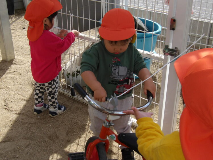 ひよこ組さんは三輪車や四輪車に夢中でした![]()