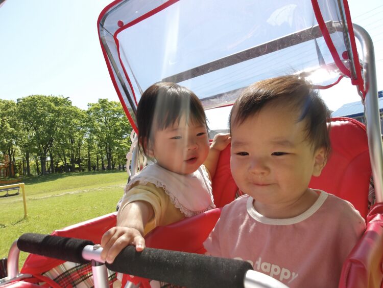 ひよこ組さんは、ベビーカーで公園内をお散歩🎵