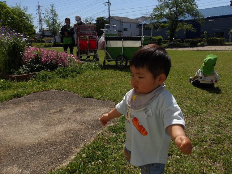 今日は、ひよこ組さんの皆んなで園庭に出ました🌱