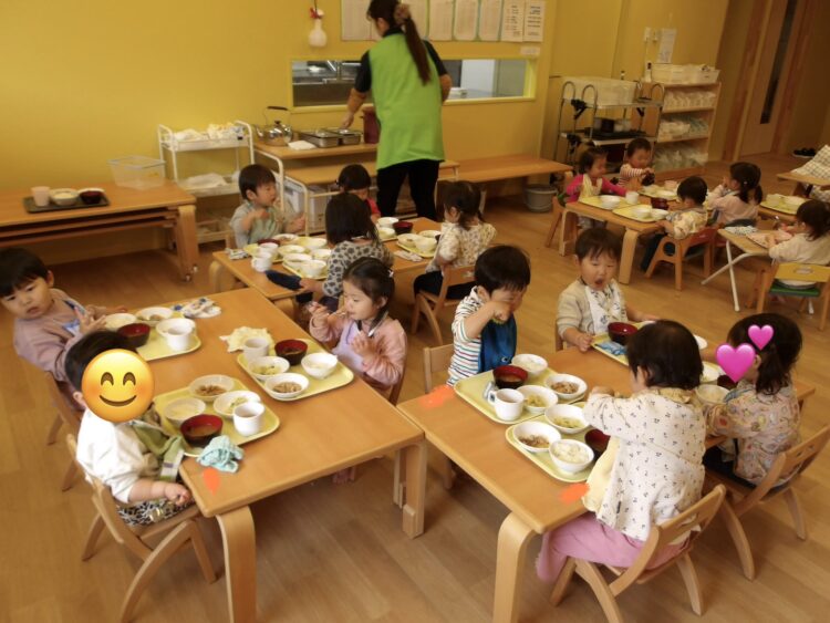 お給食おいしいね!初めて給食を食べた日よりも、たくさん食べられるようになりました✨